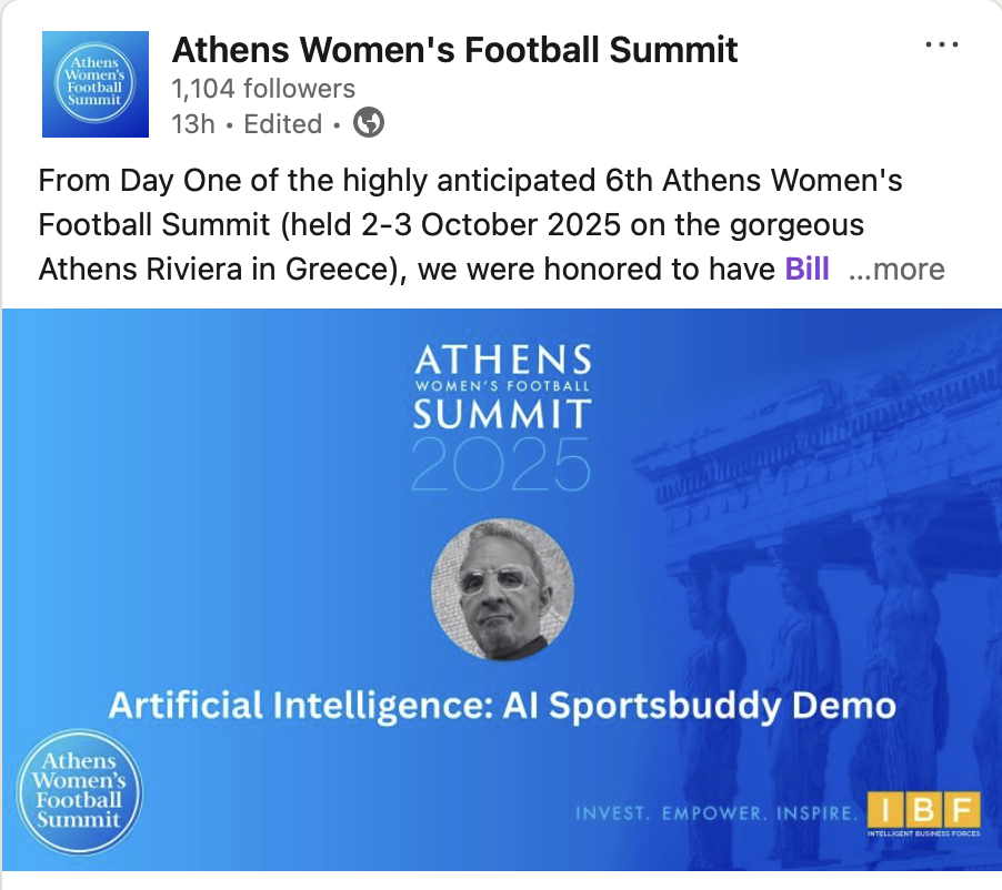 Our CUSTOM AI SPORTSBUDDY FOR THE ATHENS WOMEN’S FOOTBALL SUMMIT